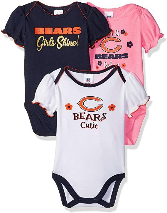 NFL Chicago Bears 3 Pack Girls Short Sleeve Bodysuits 0/3 Month