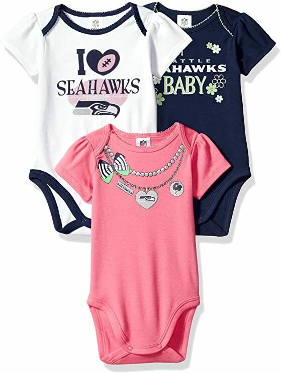 NFL Seattle Seahawks Girls 3 Pack Short Sleeve Bodysuit 0-3 Month